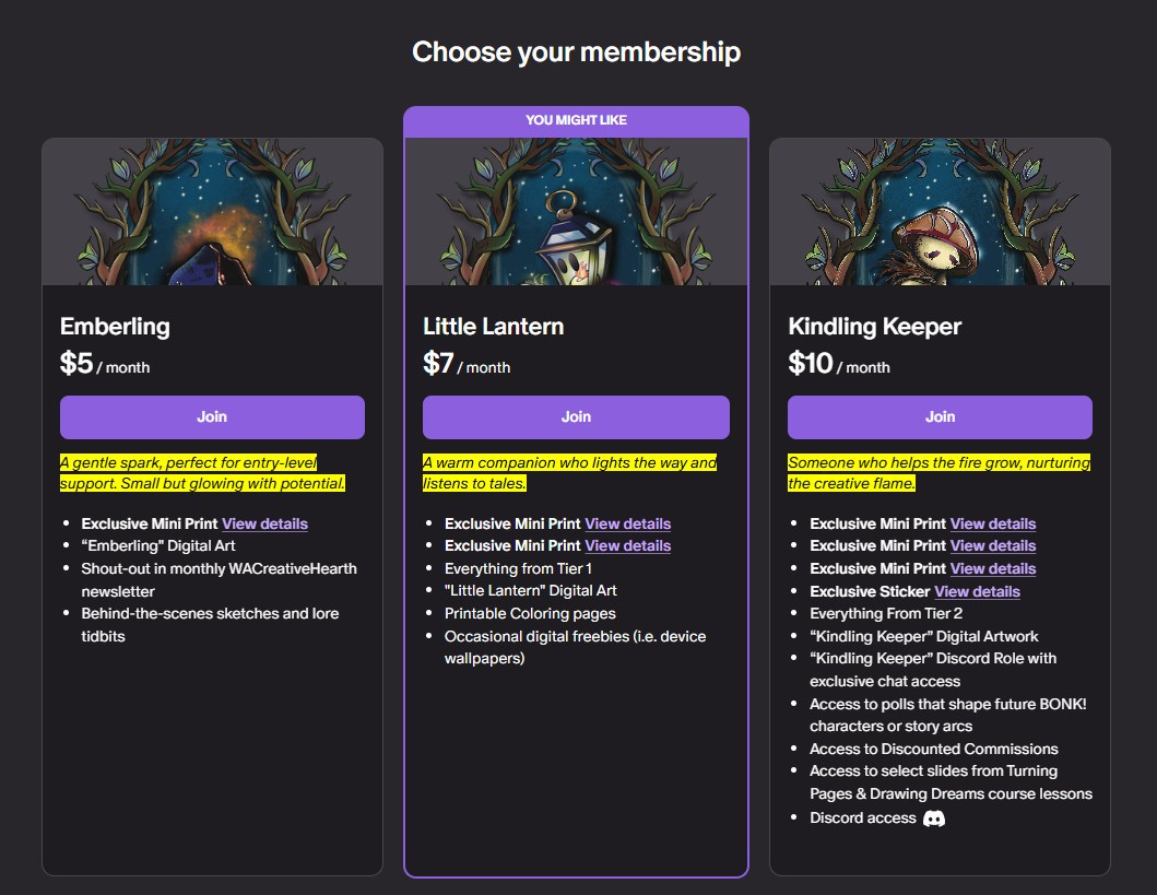 A reminder that you can now find me on Patreon! This is just another small way you can show your artist support- the $7 Little Lantern tier is the popular choice- and gets you: