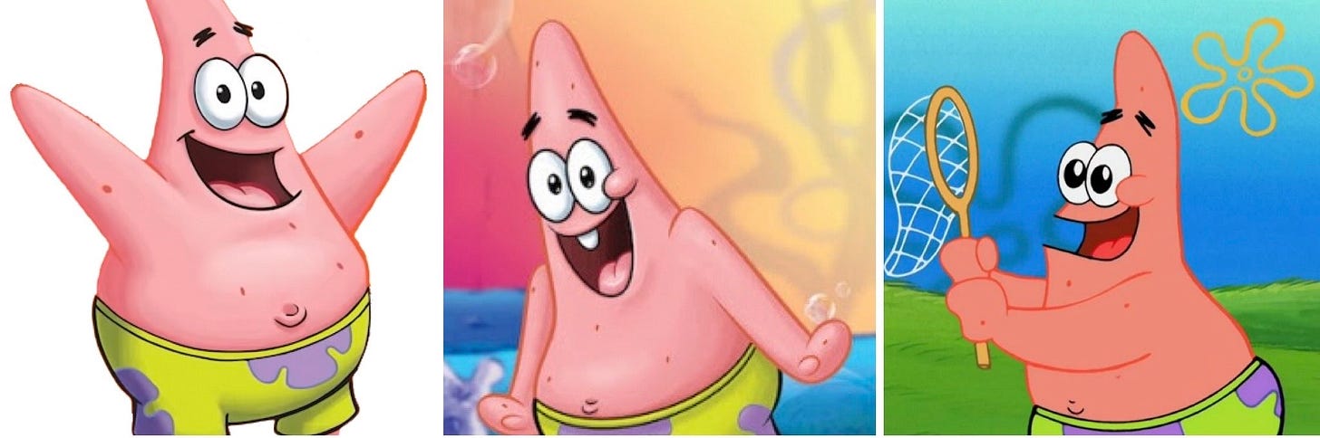 Patrick Star is my favorite example of this. His fingers come and go as the context dictates: