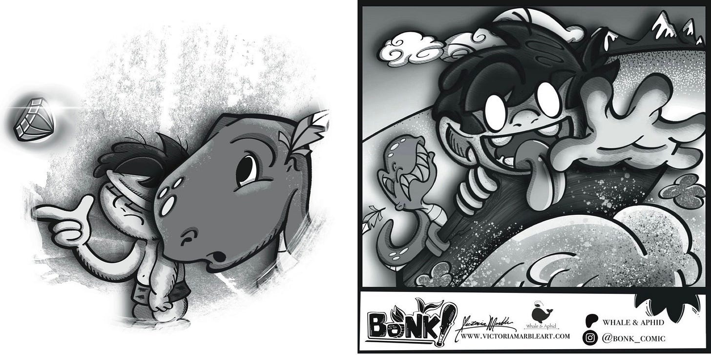 After 100 subscribers, I can begin to earn ad revenue, and in the meantime, tips can be accepted in lieu of Ko-Fi donations. The amazing benefit for you guys is that it’s free to subscribe, and, when you install the free Tapas mobile app, you’ll receive BONK! updates directly into your Tapas library. You’ll also get access to Tapas’ library of thousands of free online web comics.